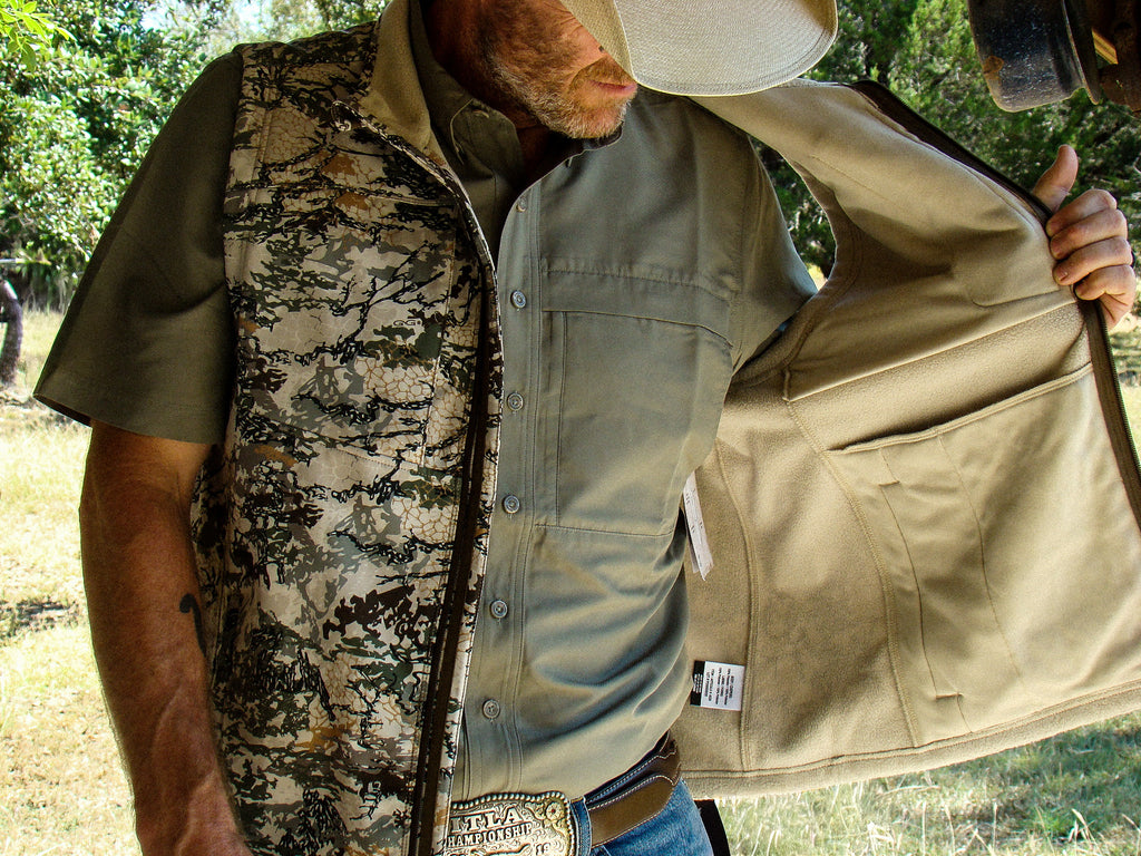 Stay agile and protected with the Guia Grande Vest, designed for hunters facing cold and unpredictable conditions. Crafted with water-resistant and abrasion-resistant materials, this vest ensures you stay dry and ready for the next challenge. The fleece liner delivers warmth without restricting movement, and mesh-lined underarm vents offer breathability during intense activity. A removable, adjustable hood provides customizable protection when the weather turns, while secure zippered side pockets keep your essentials close. With added UV protection, the Guia Grande Vest is engineered to withstand the toughest outdoor elements while allowing you to stay focused on the hunt.